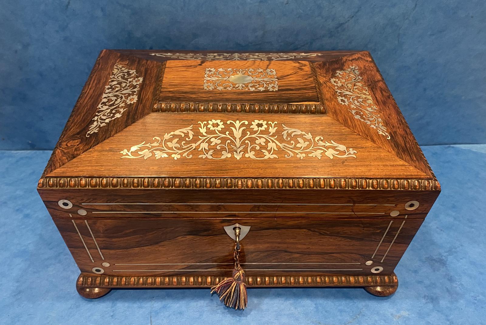 William IV Rosewood Jewellery Box with Mother of Pearl Inlay
