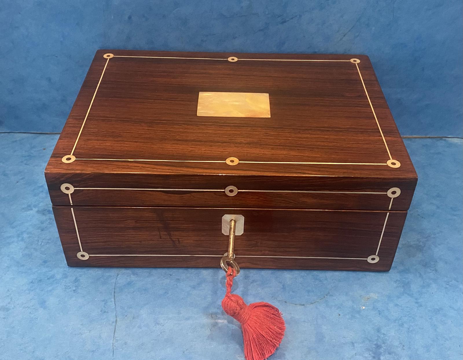 William IV Rosewood Jewellery Box with Pewter & Mother of Pearl Inlay