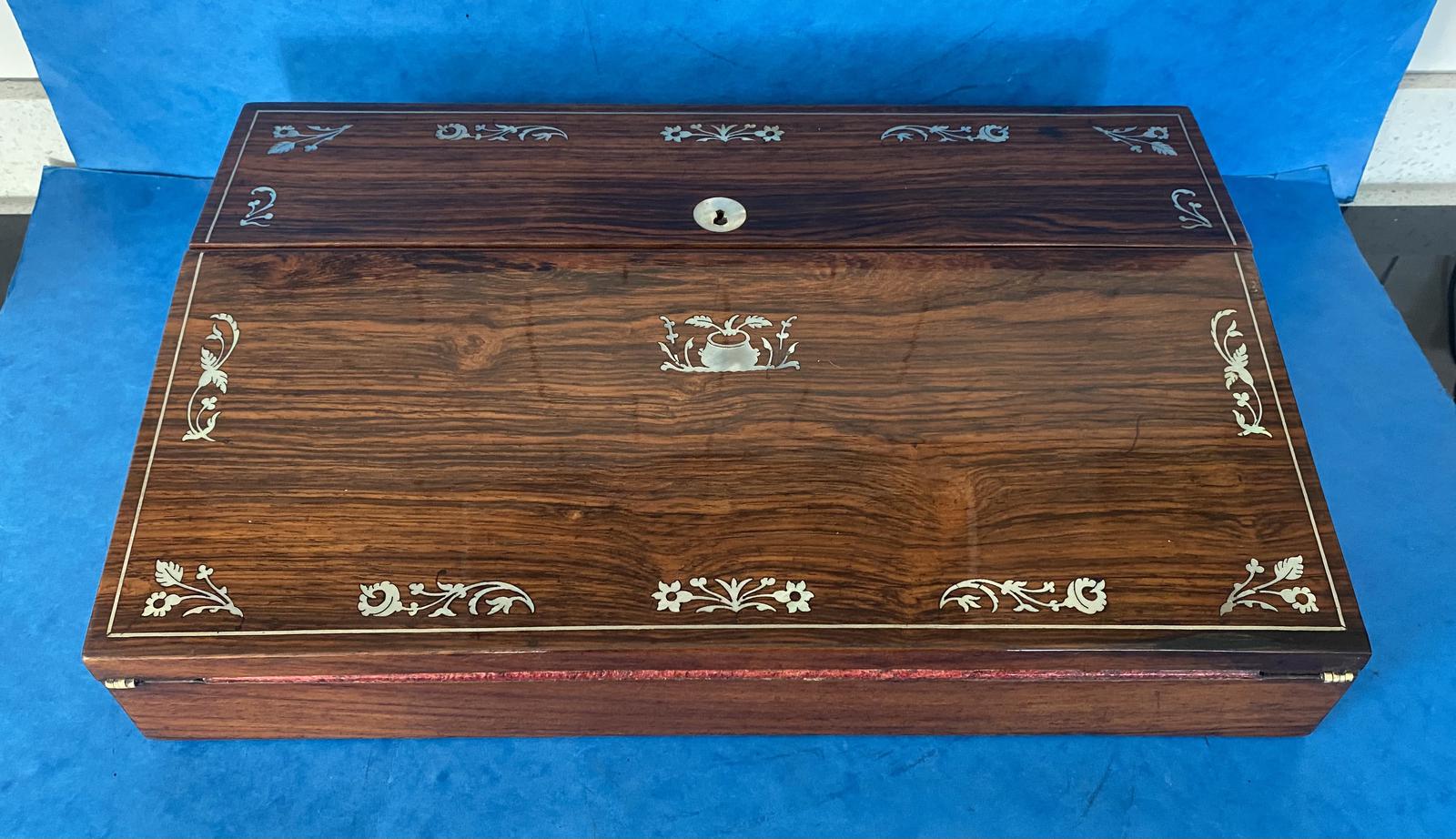 William IV Rosewood Lap Desk with Mother of Pearl Inlay
