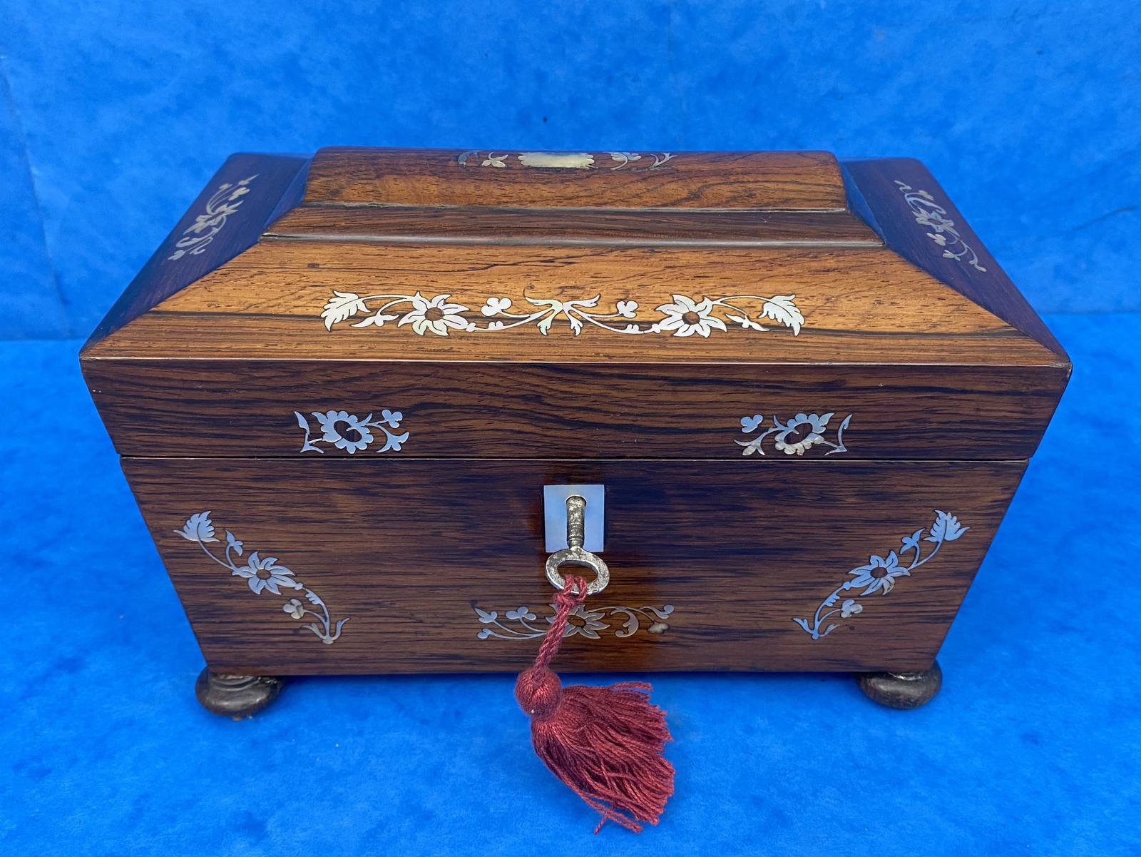 William IV Rosewood, Mother of Pearl Inlaid Twin Tea Caddy