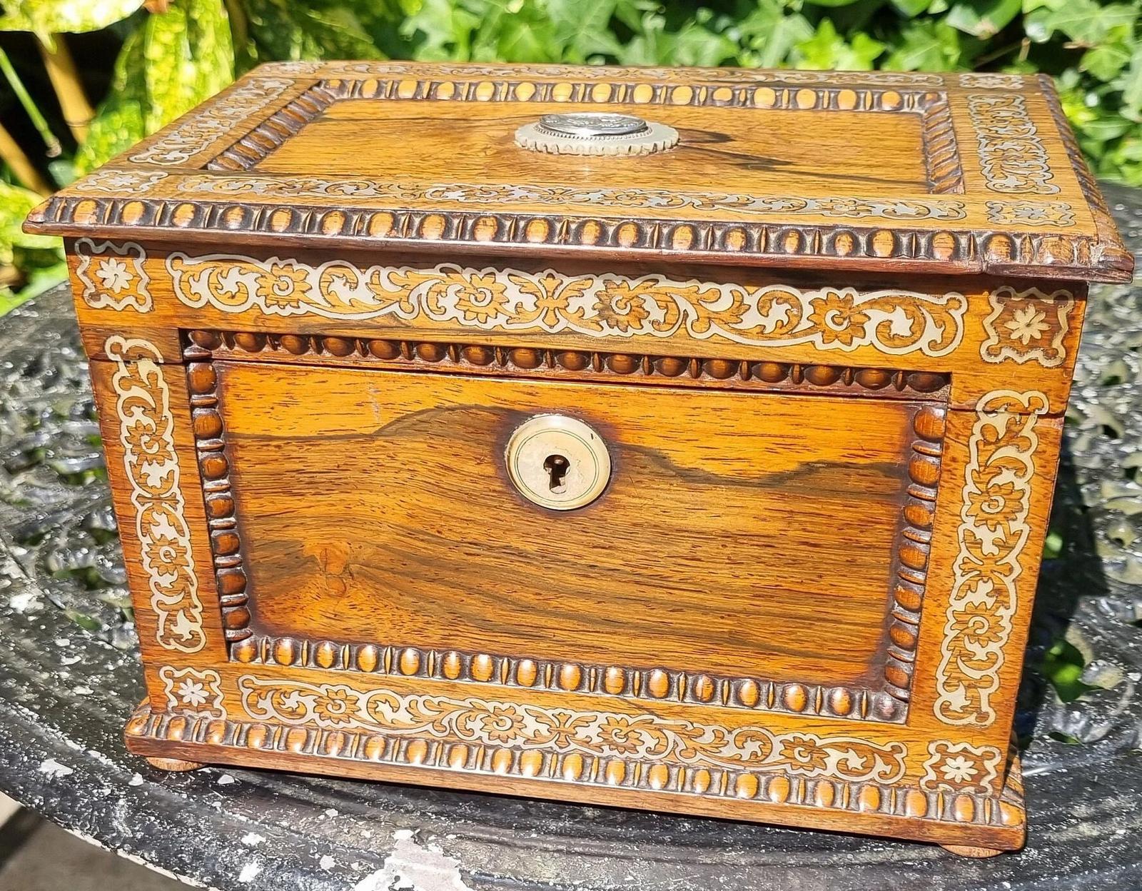 William IV Rosewood Tea Caddy Inlaid with Mother of Pearl