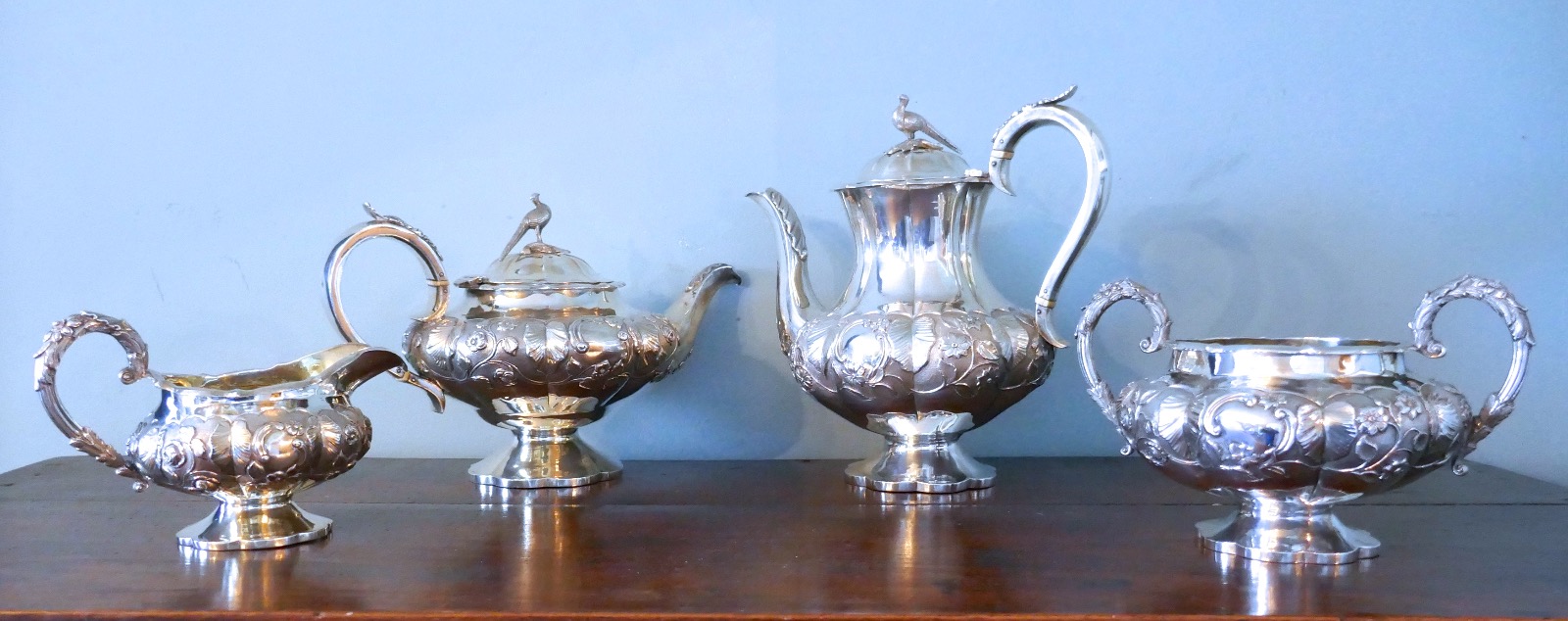 William IV Silver Four Piece Tea & Coffee Set by William Hewitt, London, 1836