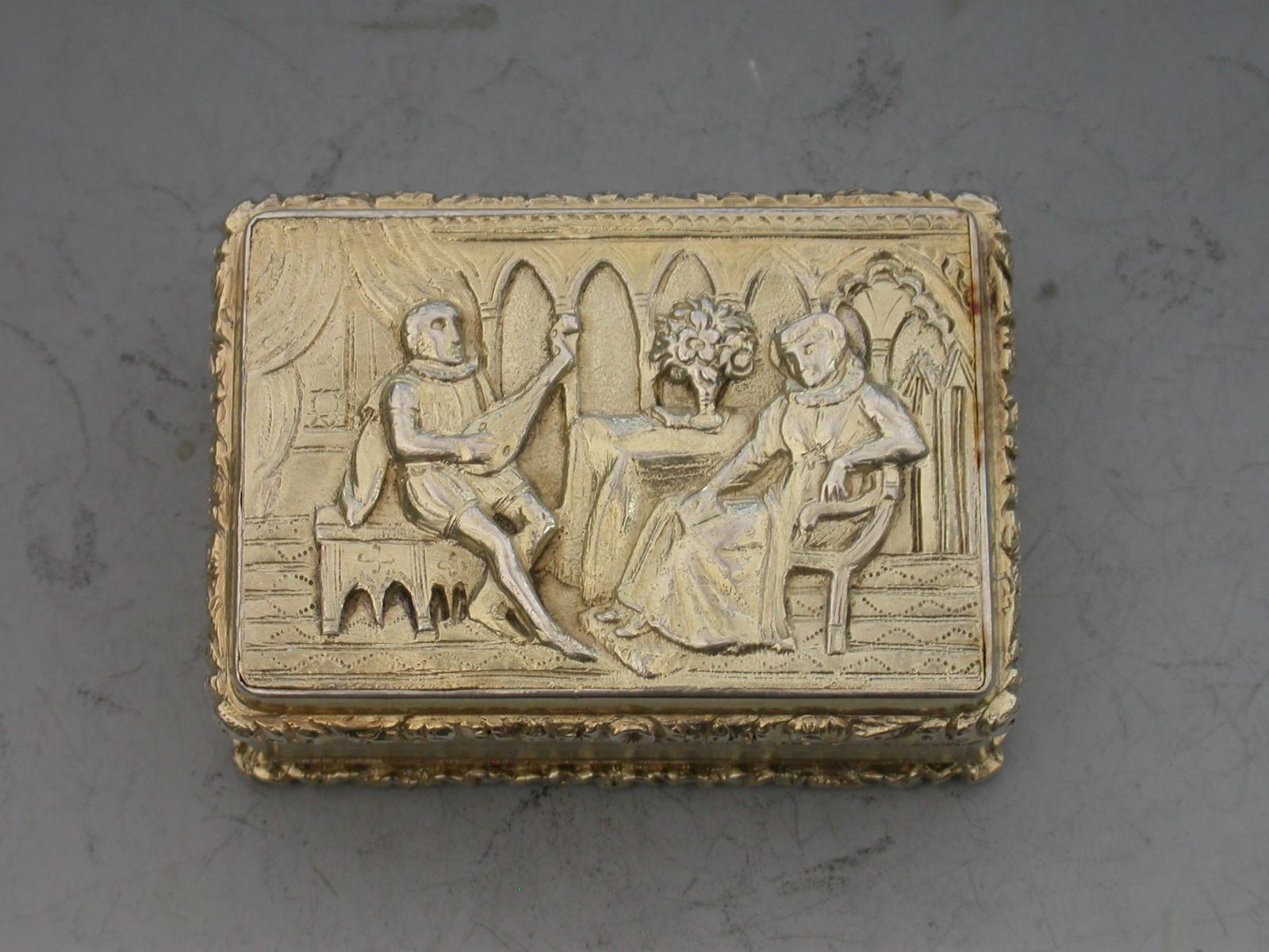 William IV Silver Gilt Vinaigrette "Chatelar Playing the Lute to Mary Queen of Scots" by John Bettridge, Birmingham 1830