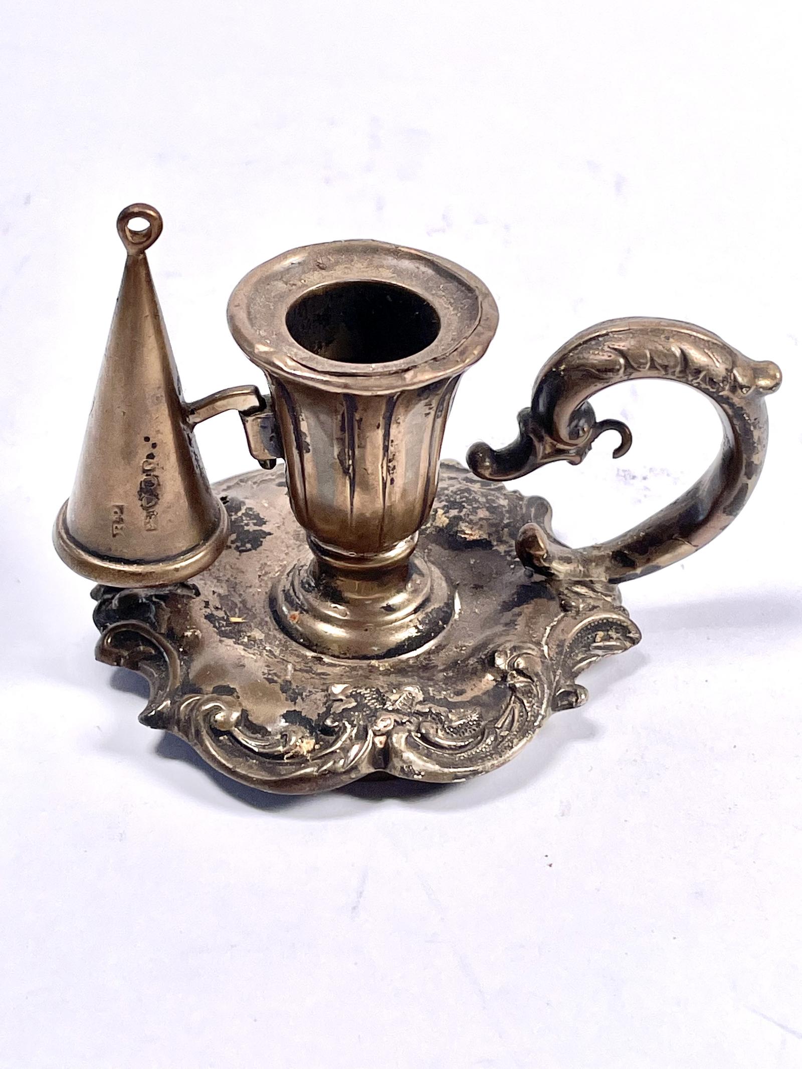 William IV Silver Inkwell Chamberstick with Victorian Silver Snuffer