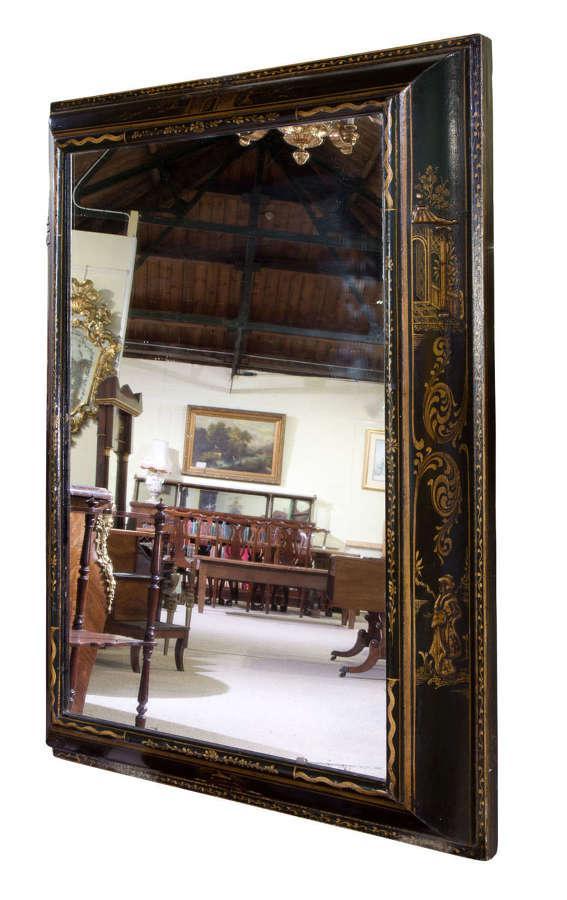 William & Mary Style Black & Gold Japanned Cushion Mirror