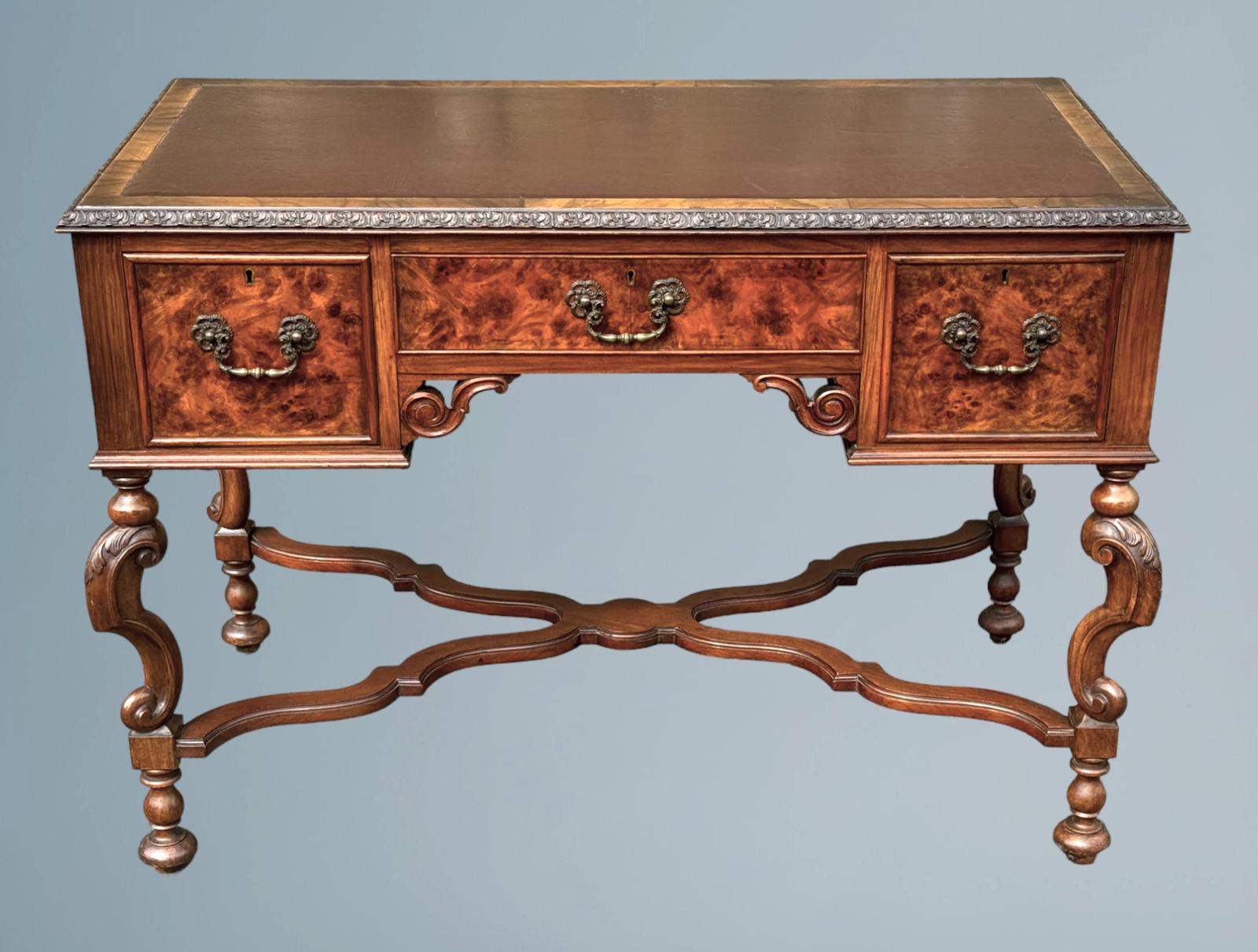 William & Mary Style Burr Walnut Kneehole Desk / Walnut Writing Table