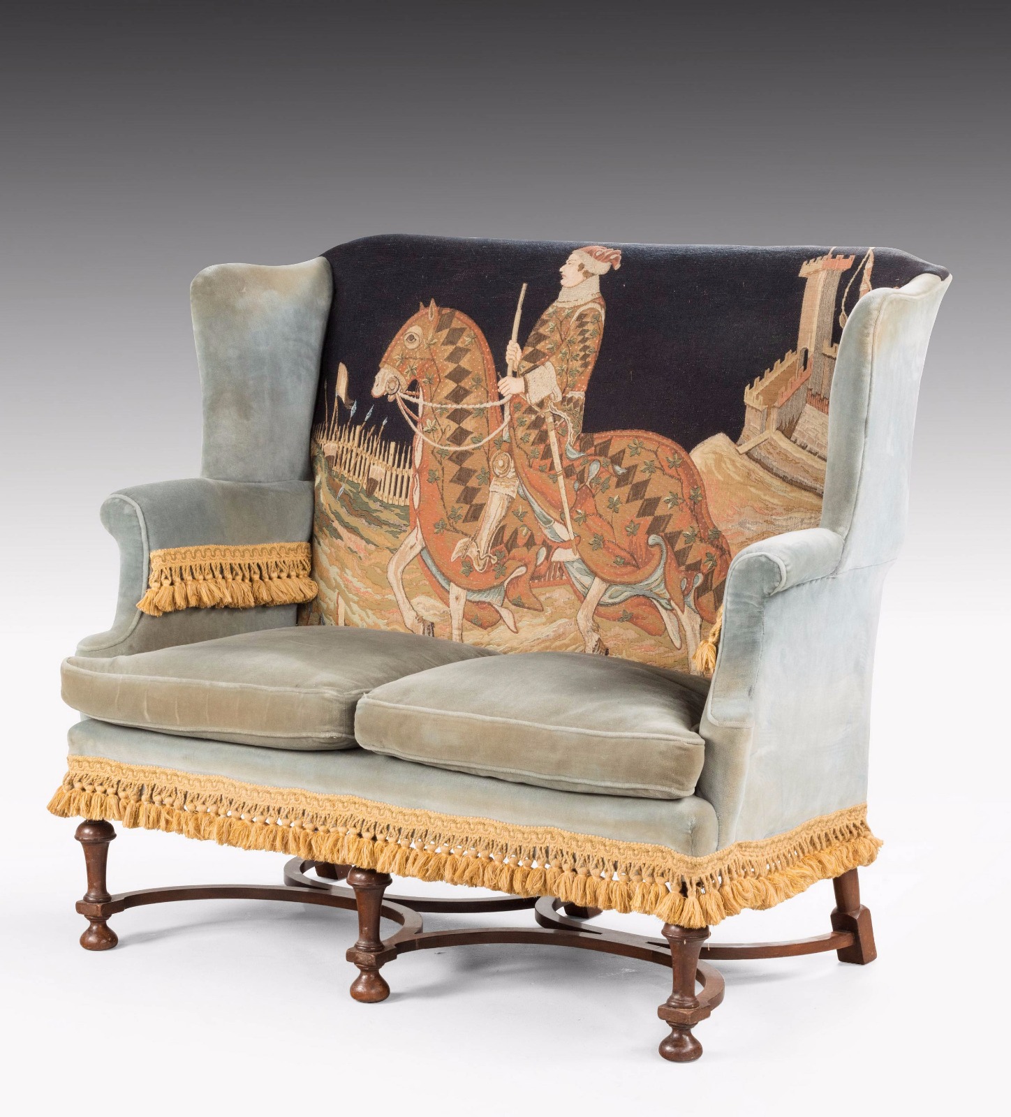 William & Mary Walnut Style Sofa with a Tapestry of a Horseman