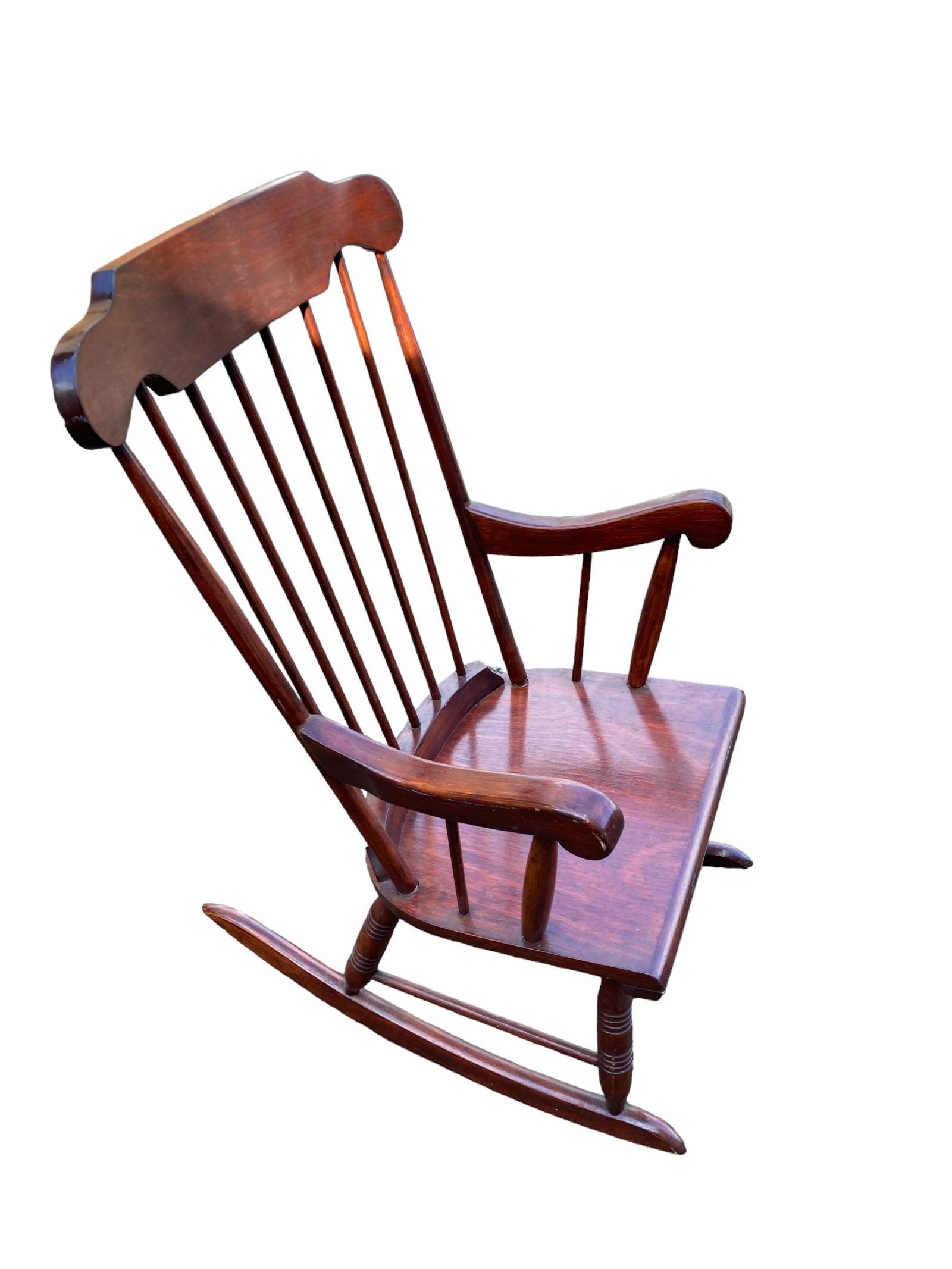 Windsor Style Rocking Chair, Mid 20th Century, Red Mahogany Wood