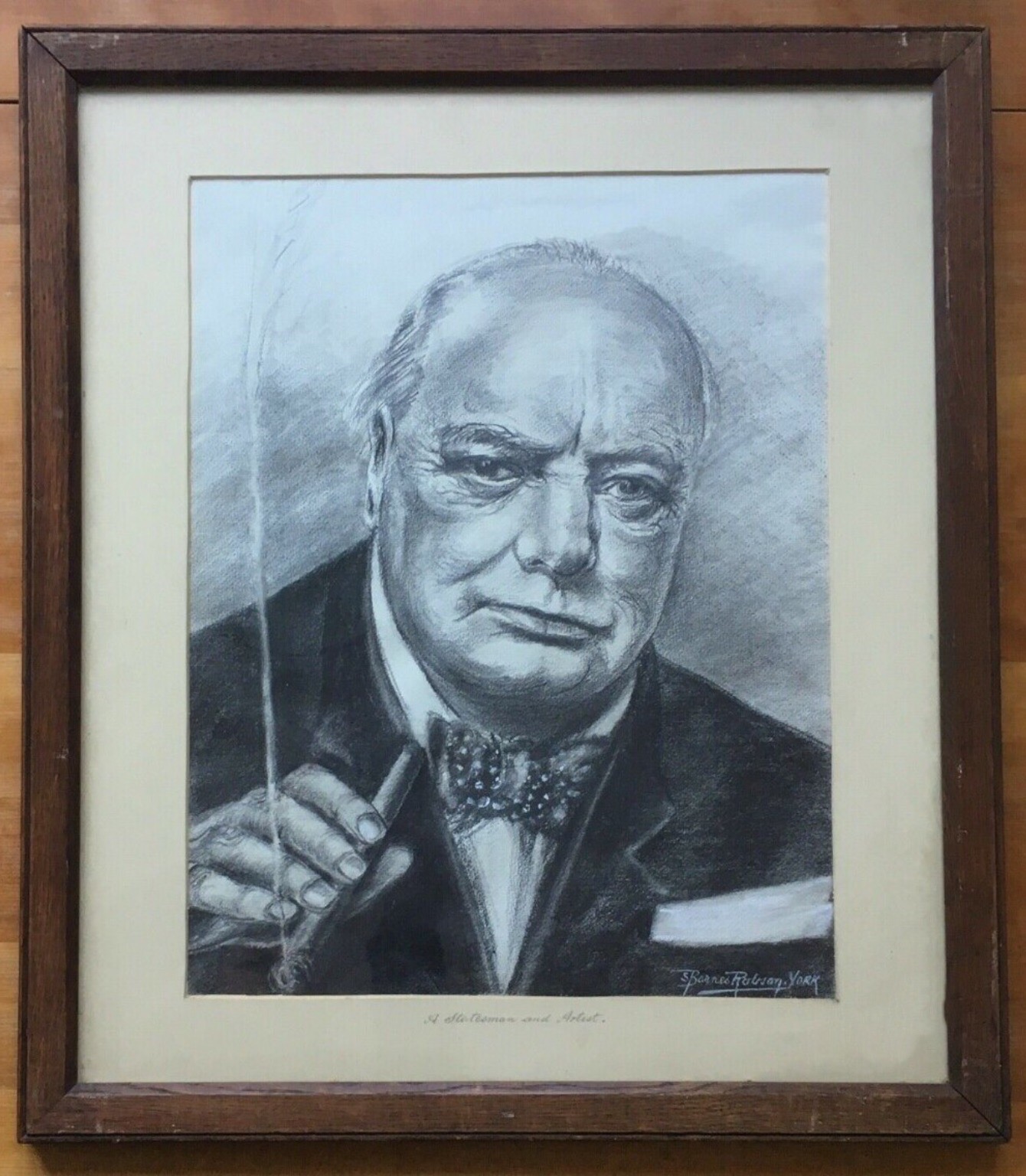 Winston Churchill Original Charcoal & Pencil Portrait Drawing Exhibited Paris 1959
