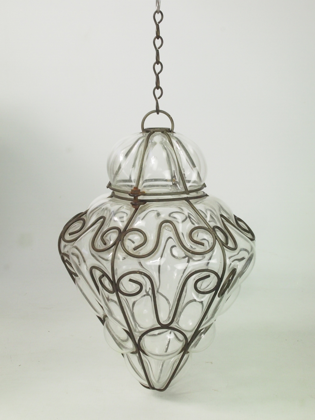 Wire Framed Glass Hanging Lamp c.1920 (1 of 1)