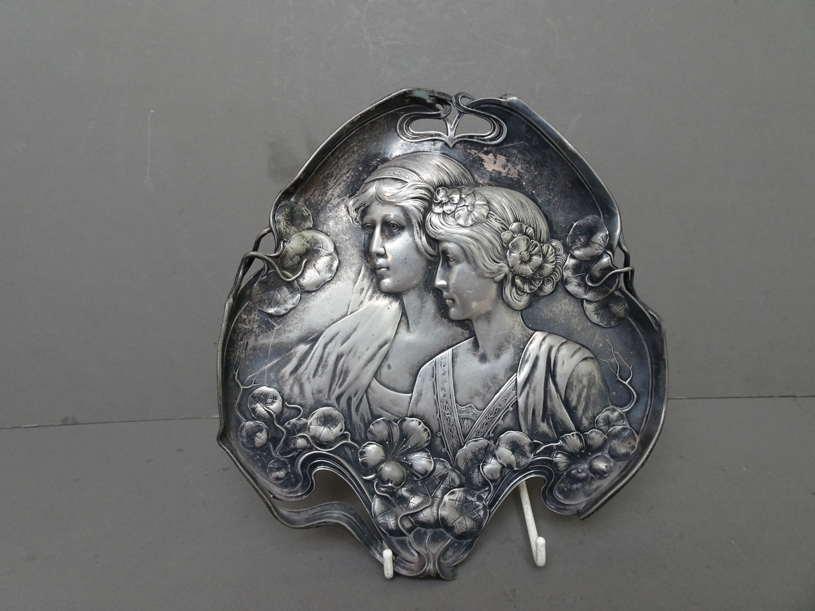 WMF Art Nouveau Pewter Tray. Two Maidens