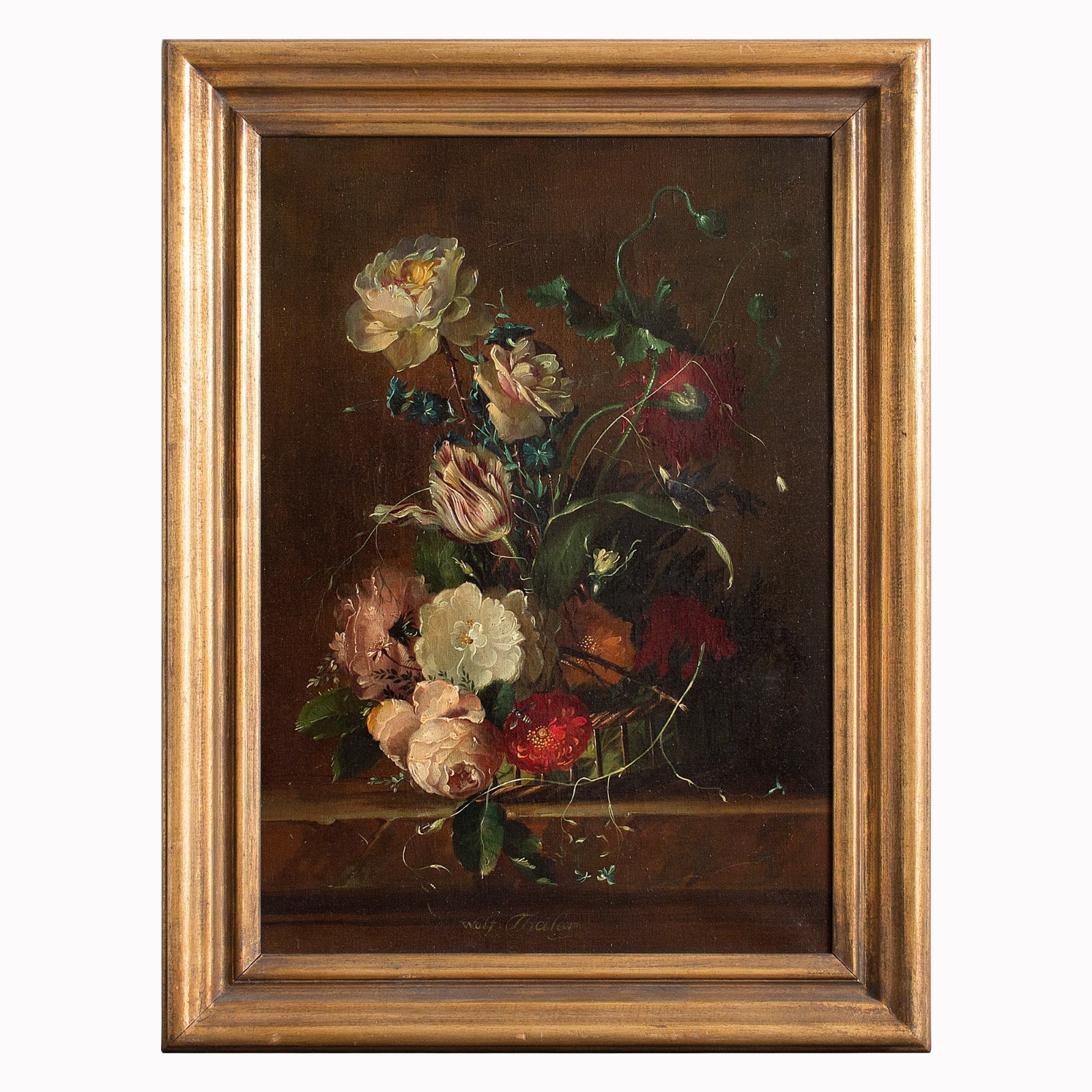 Wolf Thaler, Still Life with Flowers, Vintage Oil on Canvas