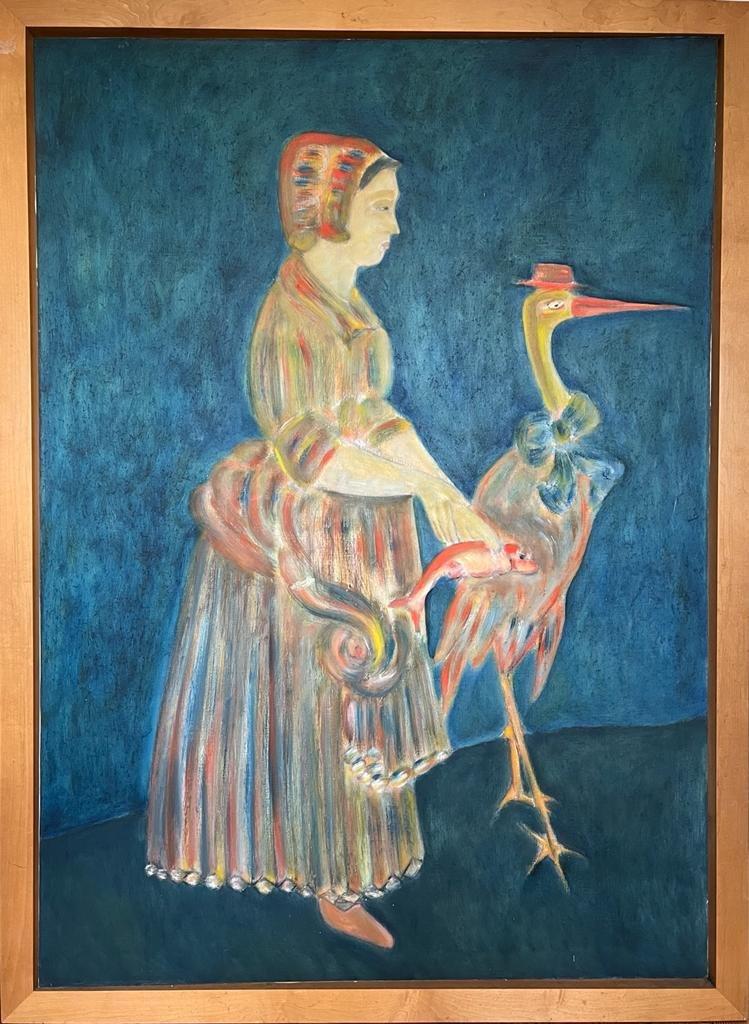 Woman with Crane, Oil on Canvas by Claude Simard, 1989