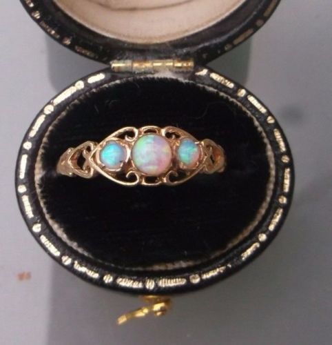 Women's 9ct Gold Opal Three-Stone Ring Weight 1.5g Size O Stamped Quality Ring