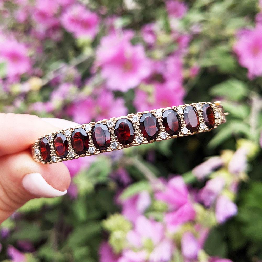 Women's Vintage 9ct Gold Garnet & Diamond Bangle