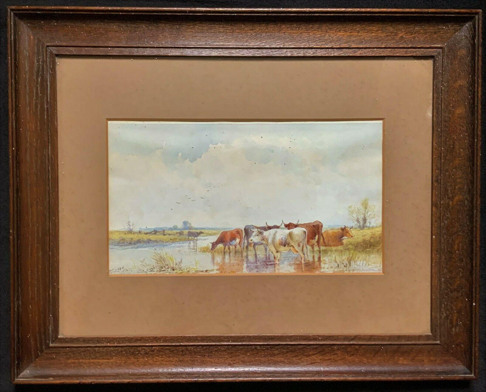 Wonderful 19th Century Watercolour Painting of Cattle in Country Landscape Setting