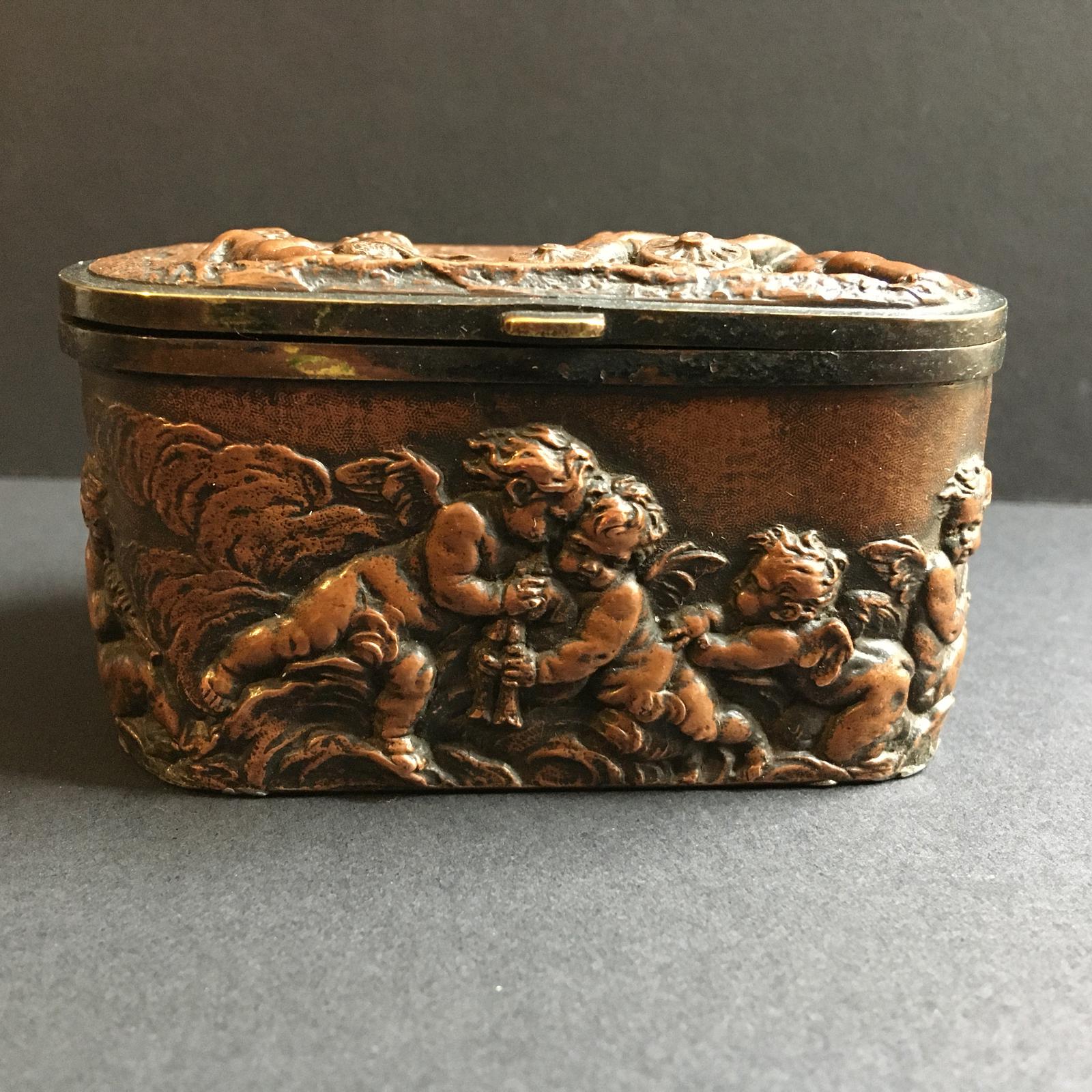 Wonderful Antique Jewellery Box, Embossed with Playful Cherubs, Puttis & Faun