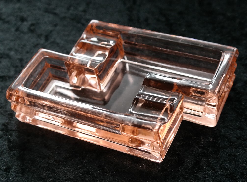 Wonderful Art Deco Pink Pressed Glass Ashtray C.1930