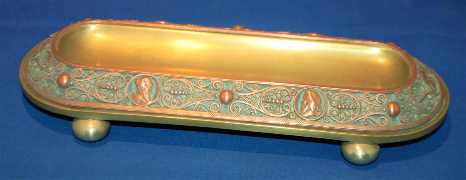 Wonderful Brass & Copper Filigree Pen Tray, Historical Figure Detail