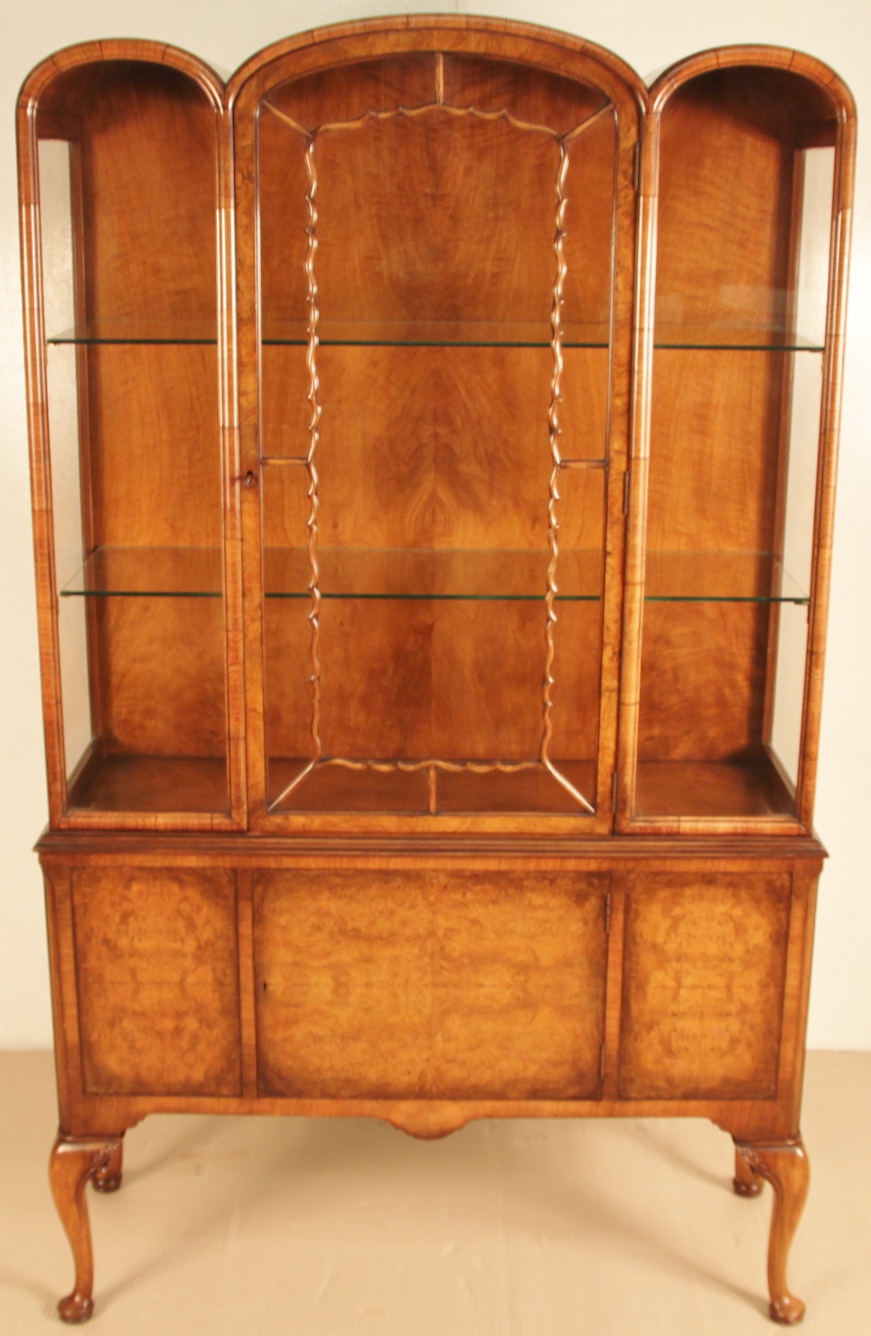 Wonderful Burr Walnut triple Dome Display Cabinet c.1900