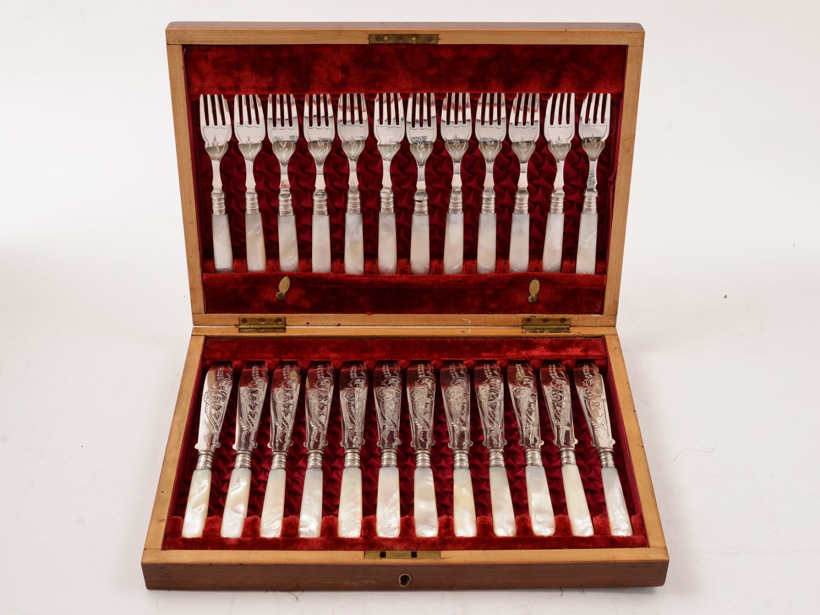 Wonderful Edwardian Cased Mother of Pearl Fish Set, 1902