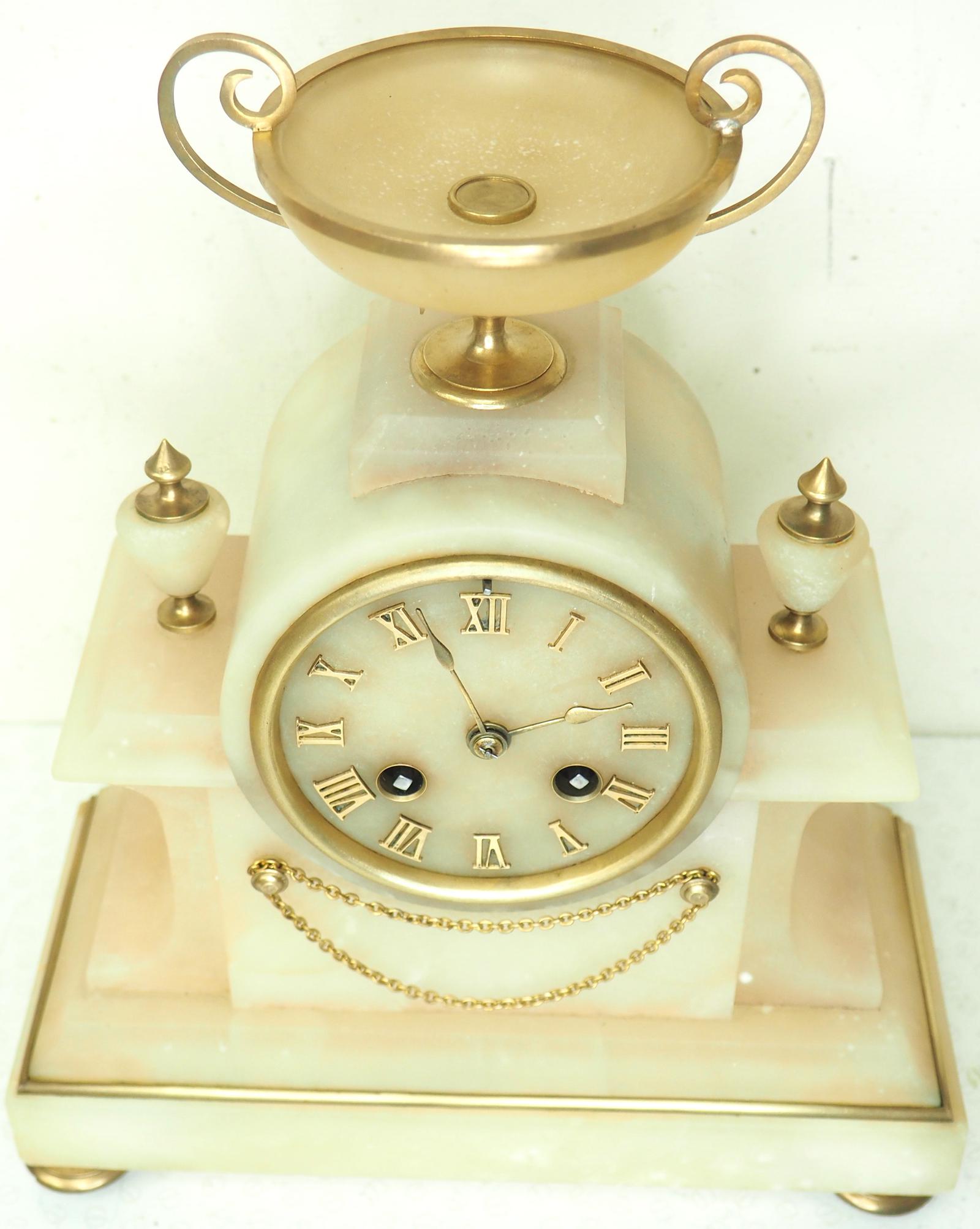 Wonderful French 8-Day Mantel Clock Alabaster Clock with Ormolu Mounts Striking A Bell (1 of 12)