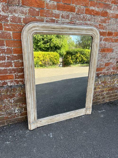 Wonderful Highly Useful Size Antique French 19th Century Carved Wood & Gesso Arched Top Painted Louis Philippe Mirror