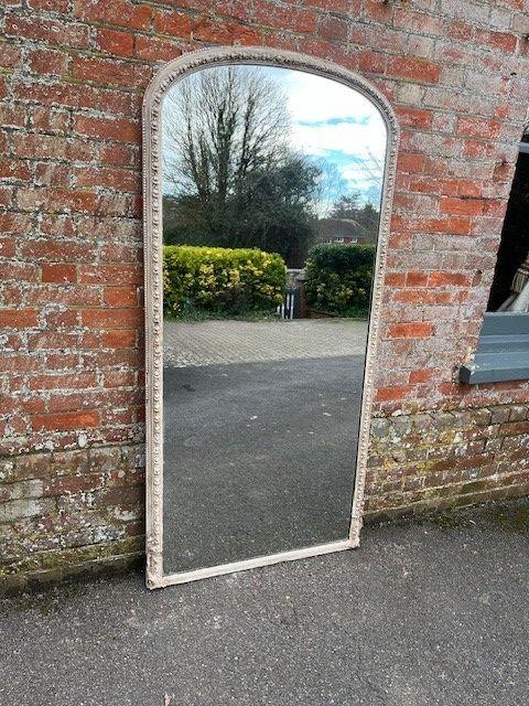Wonderful Large Antique English 19th Century Carved Wood & Gesso Arched Top Painted Mirror