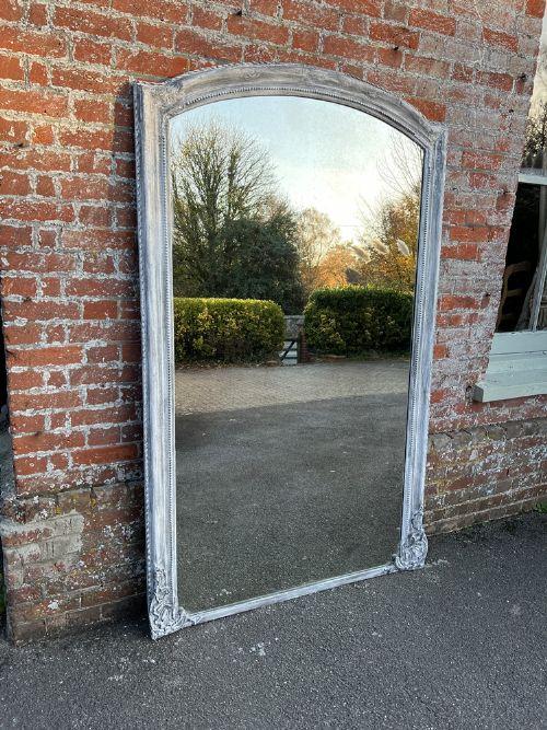 Wonderful Large Antique French 19th Century Carved Wood & Gesso Arched Top Distressed Painted Mirror