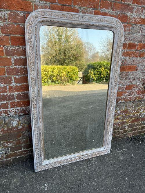 Wonderful Large Antique French 19th Century Carved Wood & Gesso Arched Top Painted Mirror