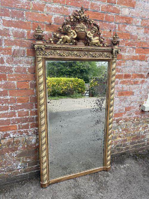 Wonderful Large Antique French 19th Century Carved Wood & Gesso Original Gilt & Painted Mirror