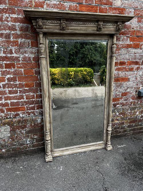 Wonderful Large Antique French 19th Century Carved Wood Painted Mirror