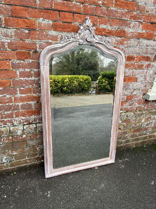 Wonderful Large Antique French 19th Century Carved Wood Shaped Top Painted Mirror