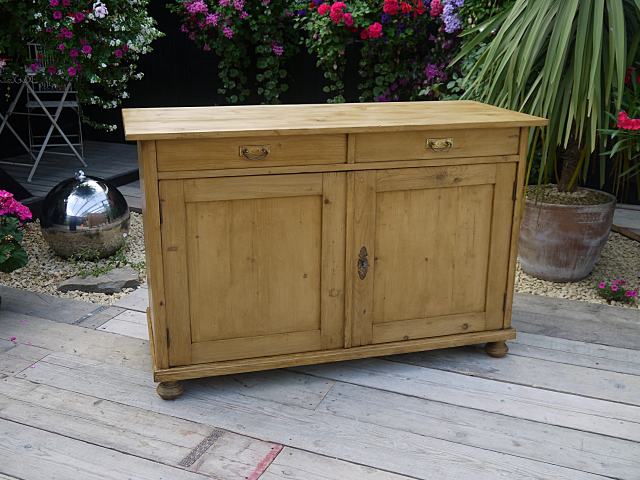 Wonderful! Large Old Antique Waxed Pine Dresser Base / Sideboard / Cupboard / Cabinet