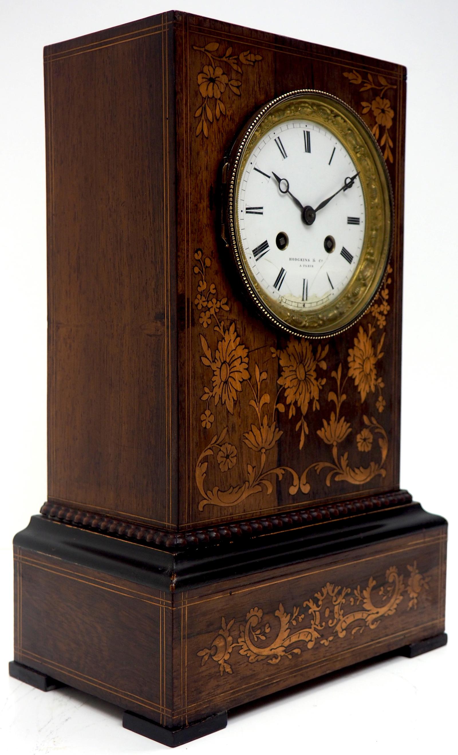 Wonderful Offices French Empire Mantel Clock Carved Floral Inlay