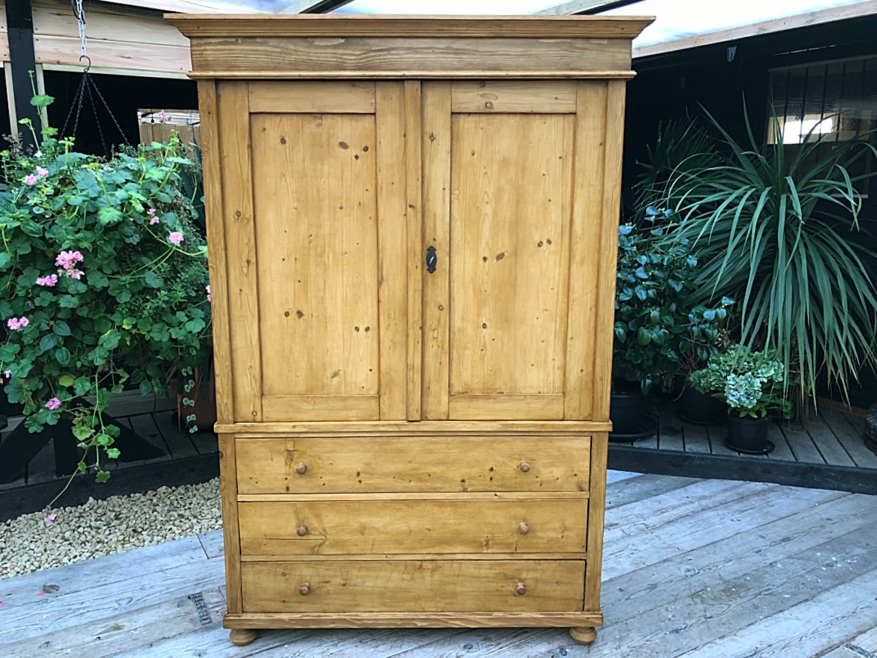 Wonderful! Old Antique Pine Two Piece Linen Press Wardrobe / Cupboard