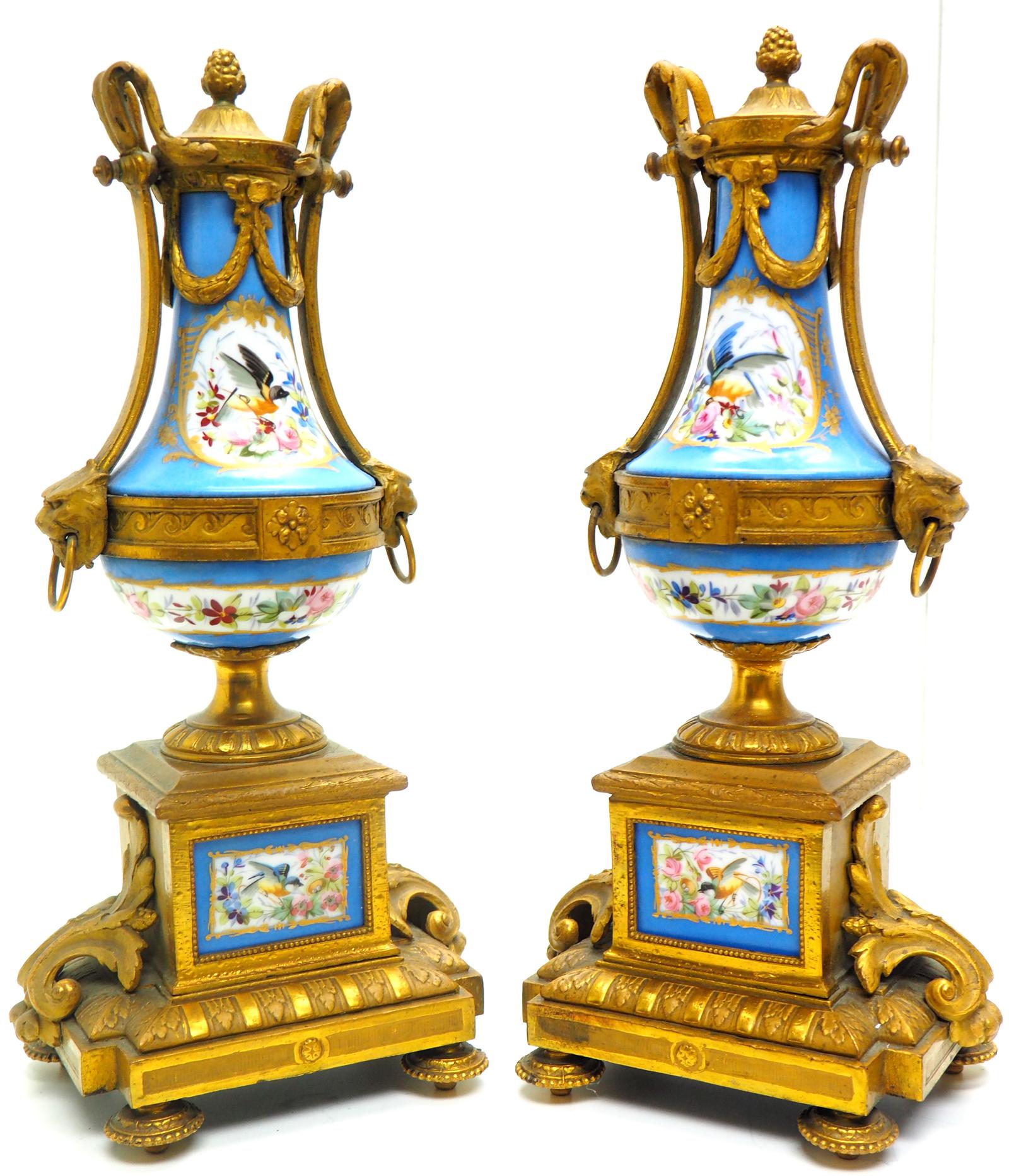 Wonderful Pair of Clock Garnitures Side Urns This Sevres Clock Garnitures
