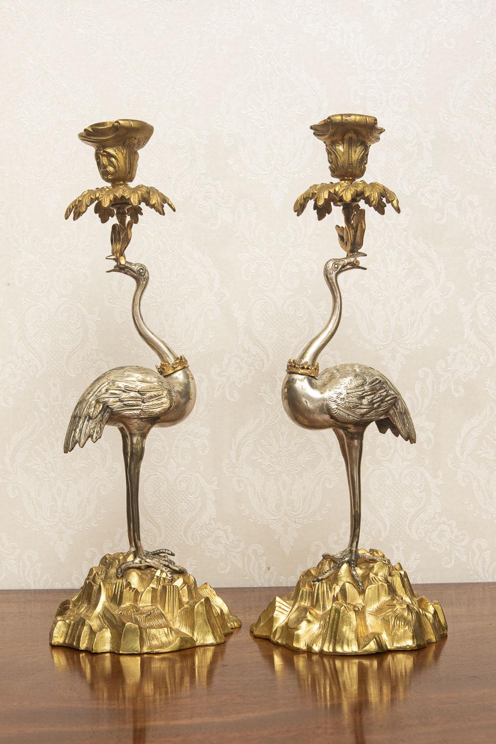 Wonderful Pair of Gilded Bronze Ostrich Candle Sticks