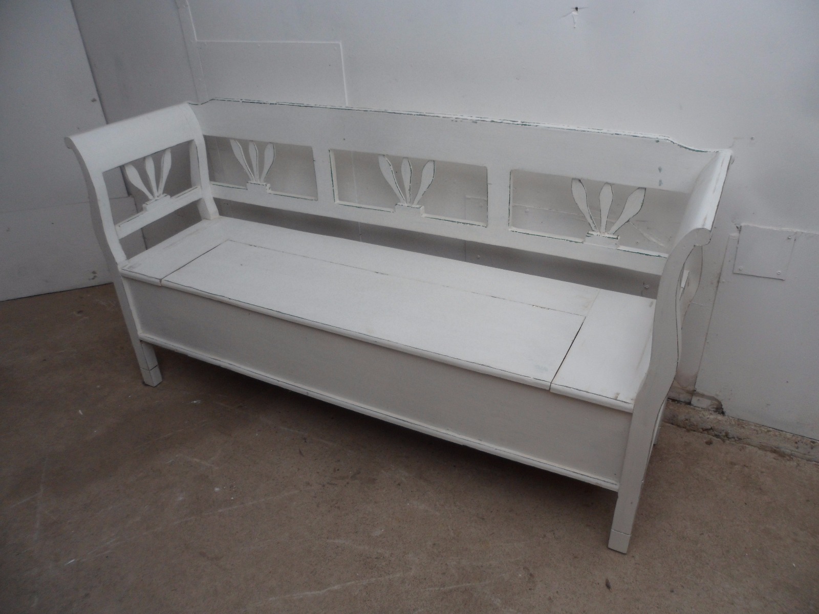 Wonderful Small 2/3 Seater Pine Shabby Chic Painted Box Settle / Bench