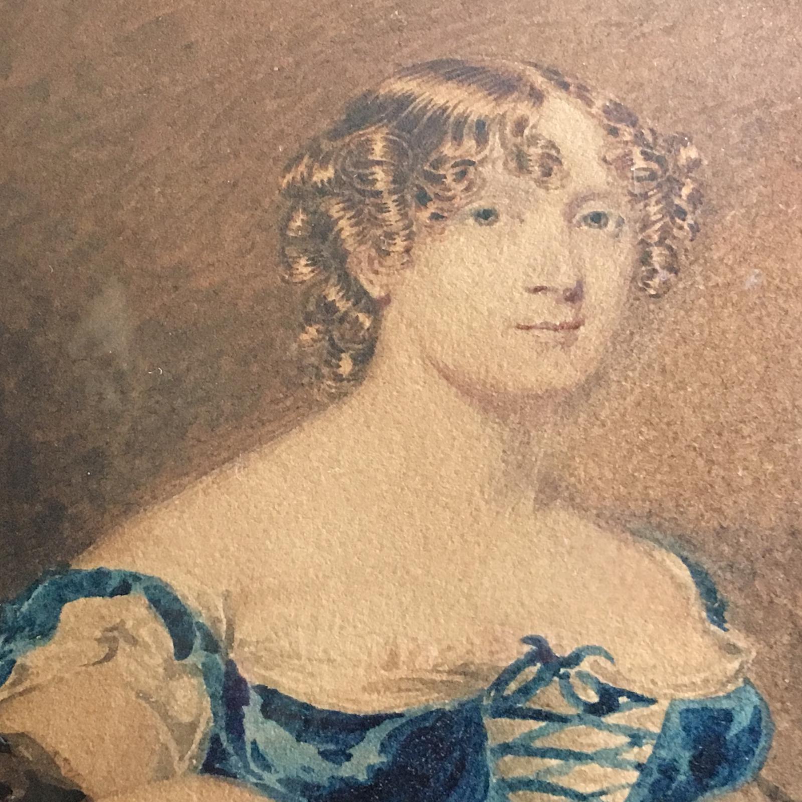 Wonderful Small Georgian Watercolour Portrait of Beautiful Woman with Soft Falling Ringlets