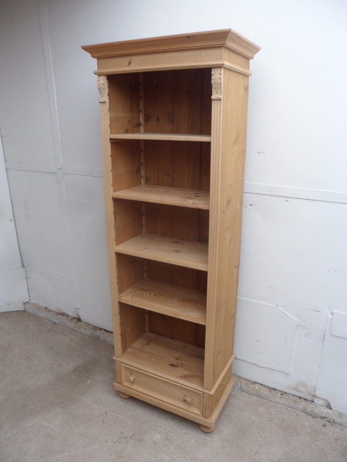 Wonderful Small Tall Thin 4 Shelf Pine Adjustable Bookshelf c.1920