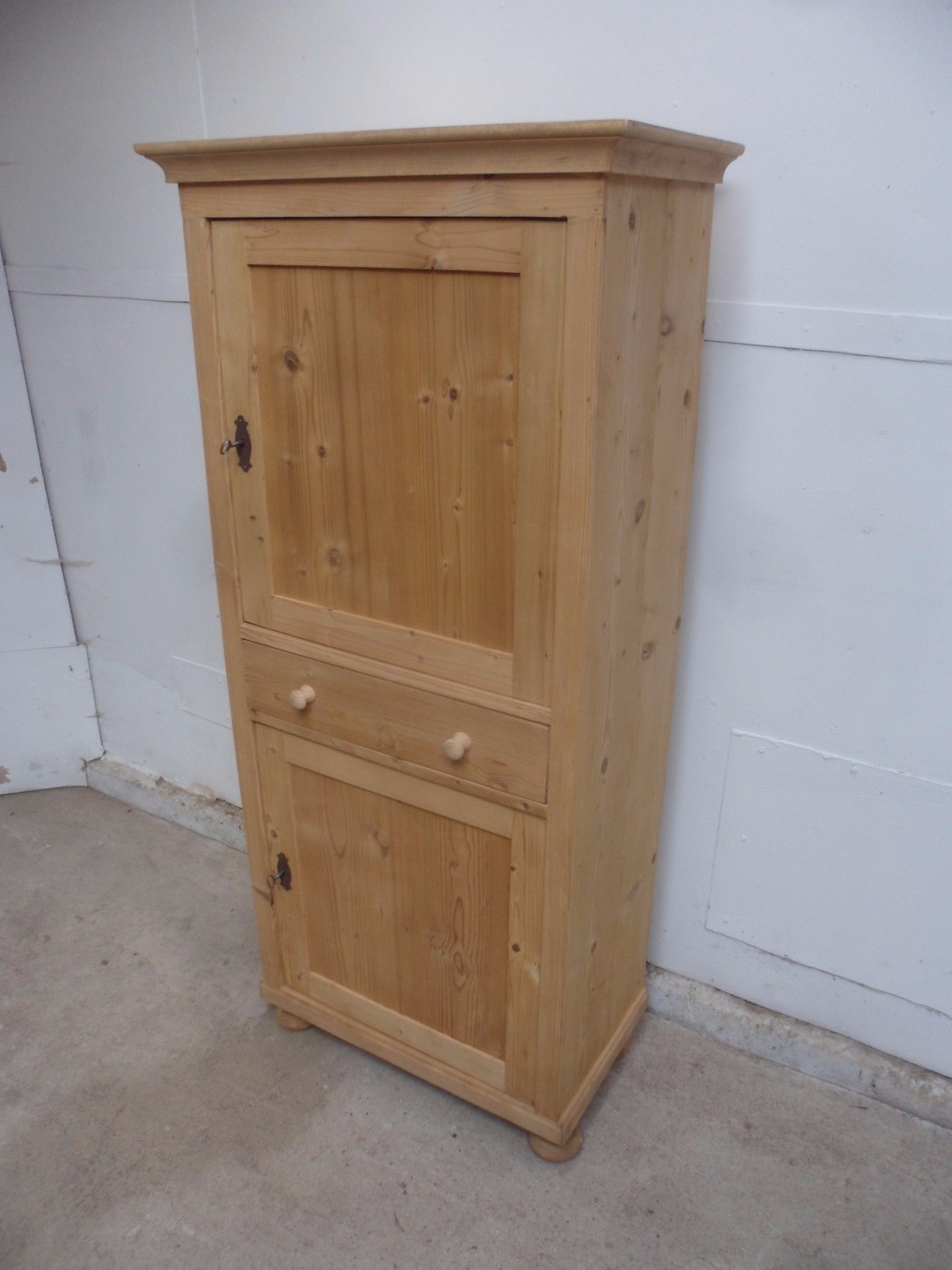 Wonderful Tall Thin 2 Door 1 Drawer Multi Functional Cupboard to wax / paint c.1920