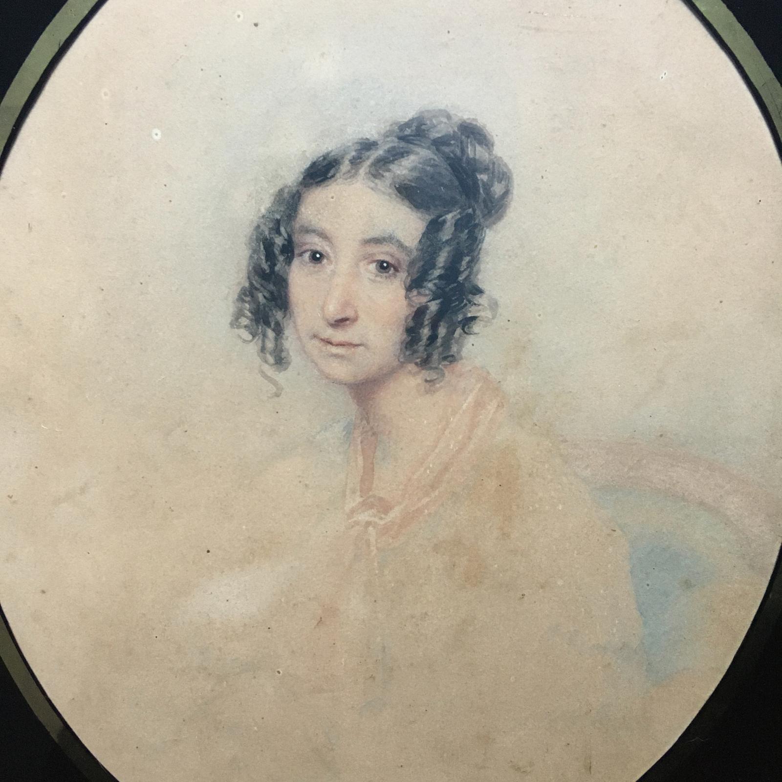 Wonderful Victorian Watercolour Study of the Beautiful Face of a Young Woman with Resplendent Ringlets