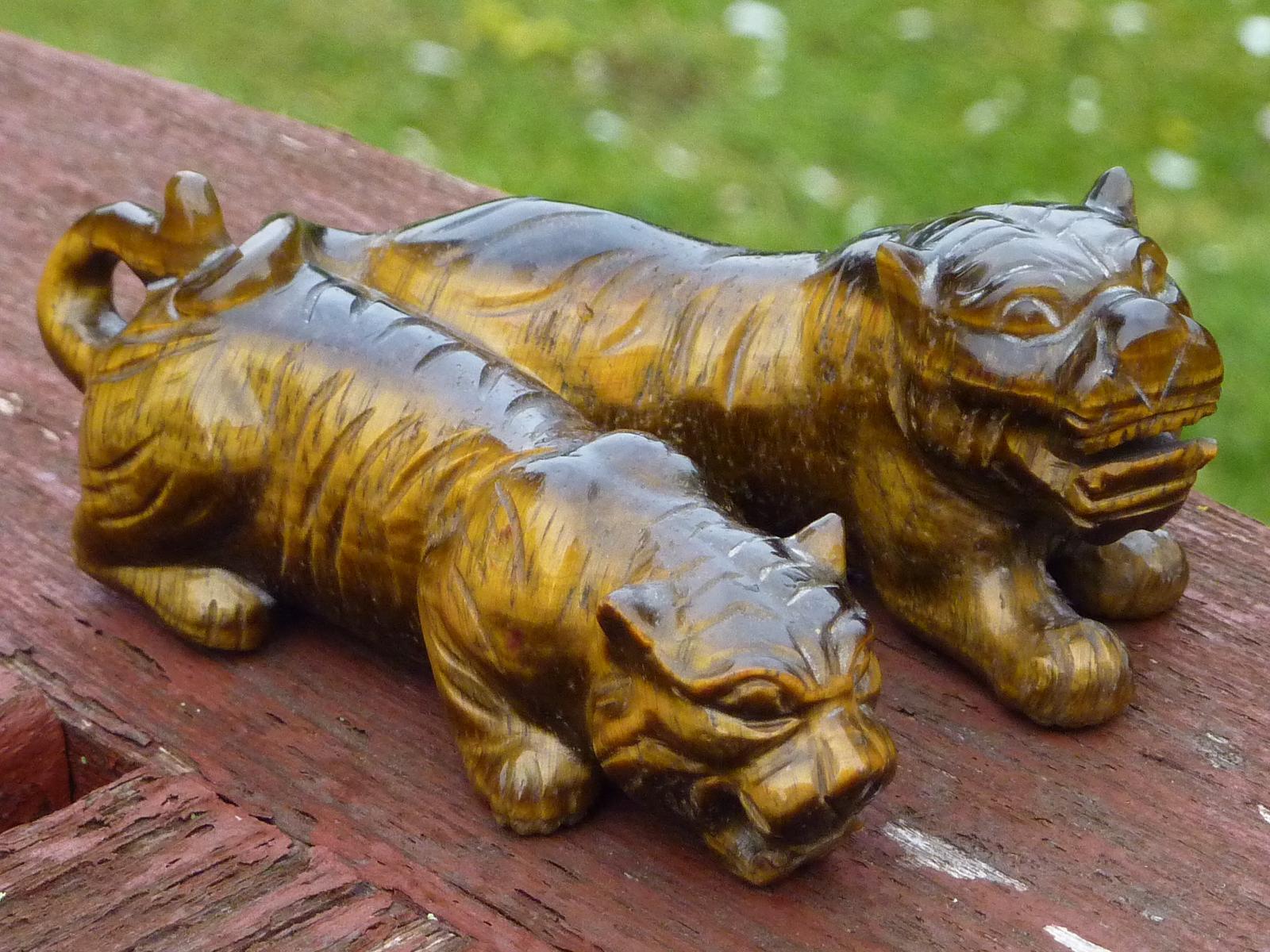 Wonderfully Carved Pair of Tiger's Eye Gemstone Tigers