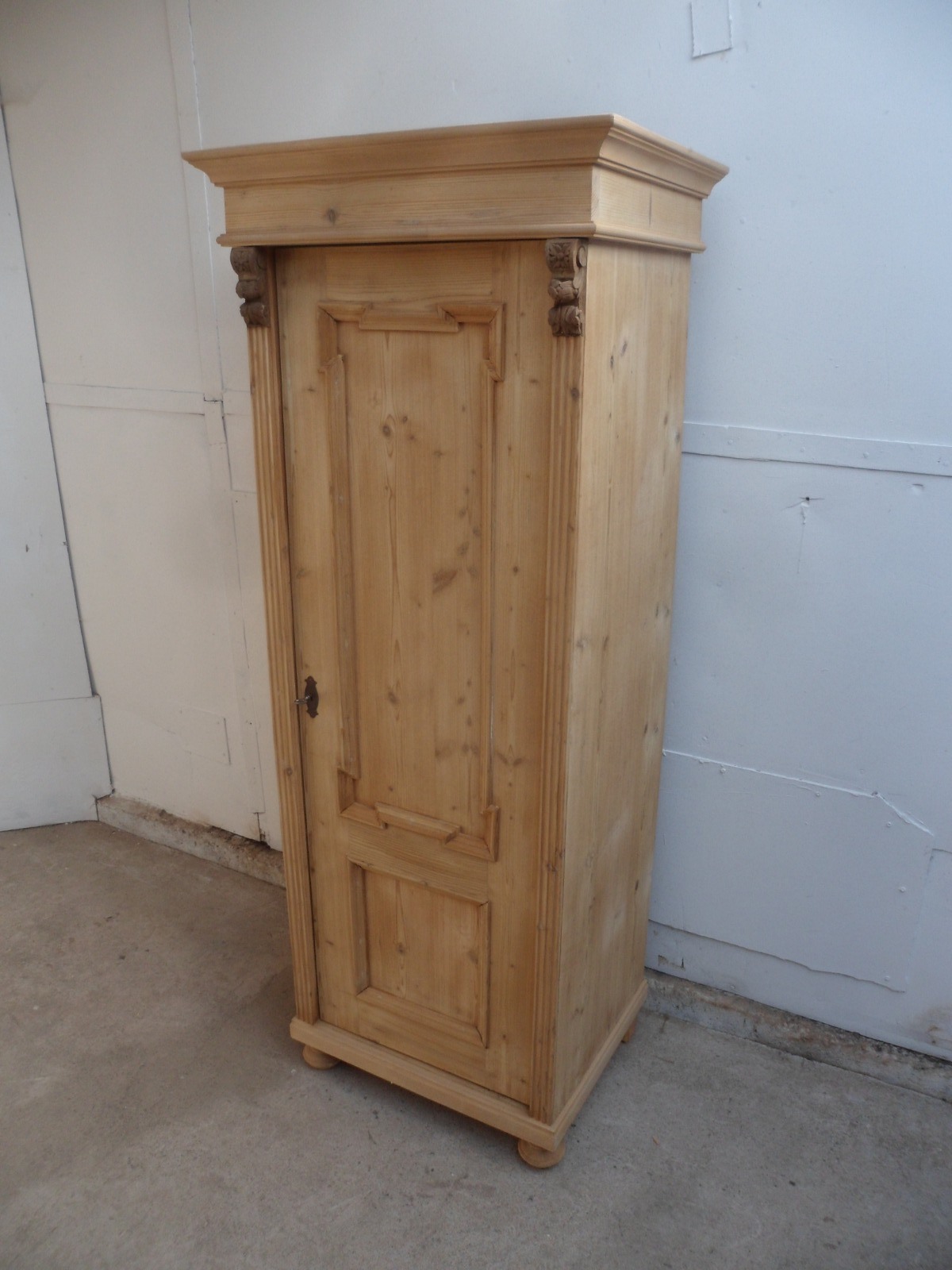 Wonderfully Carved Tall Thin Antique Pine 1 Door Cupboard to wax / paint