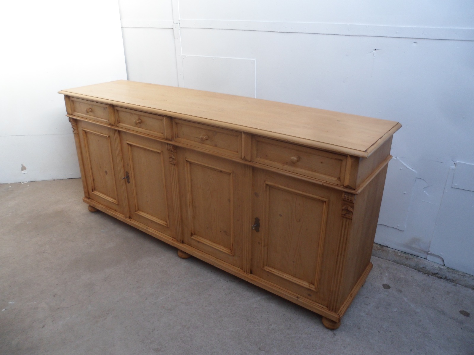 Wonderfully Waxed Large 2 Metre Reclaimed Pine 4 Door Moulded Kitchen Dresser Base