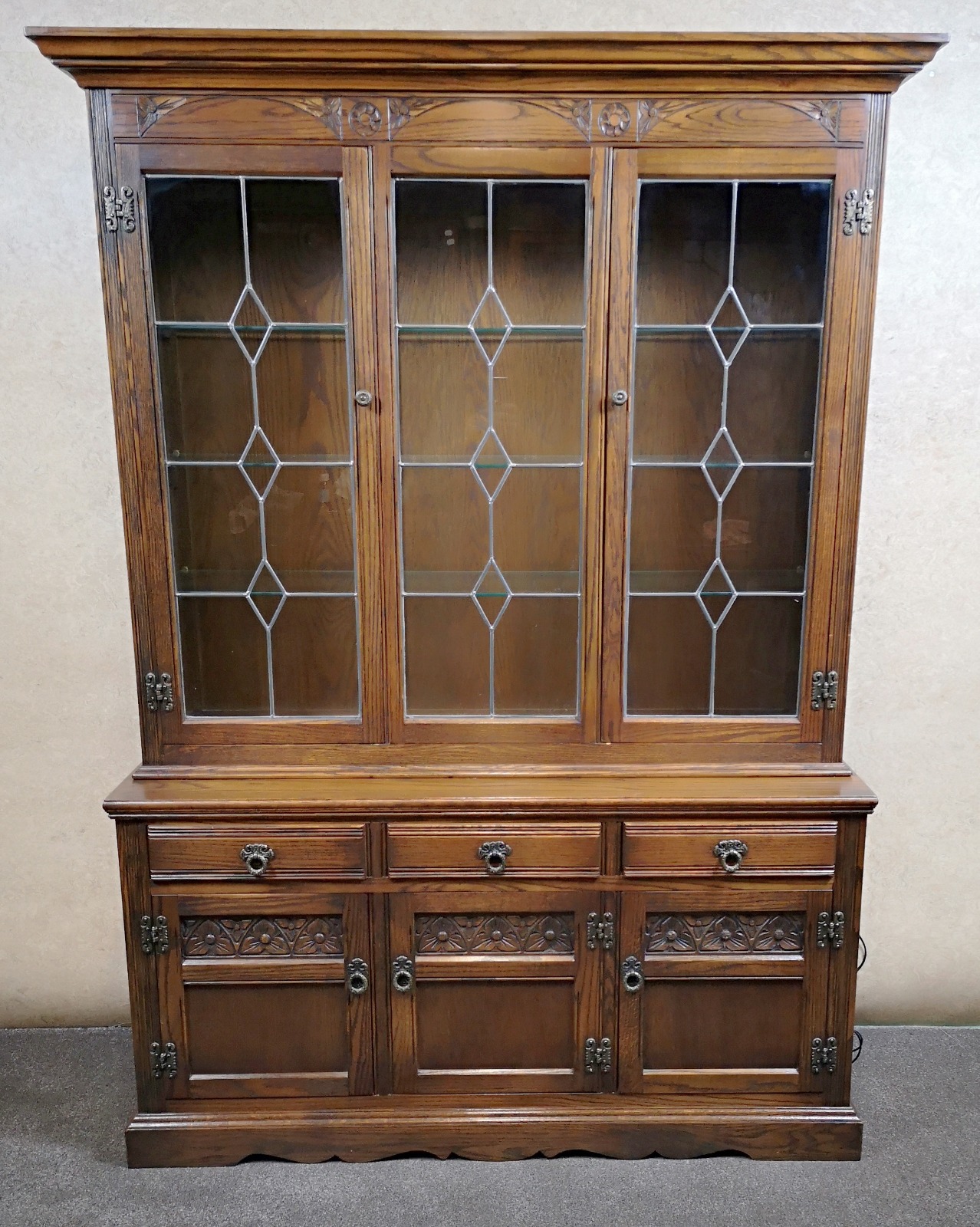 Wood Bros Old Charm Oak Sideboard / Display Cabinet