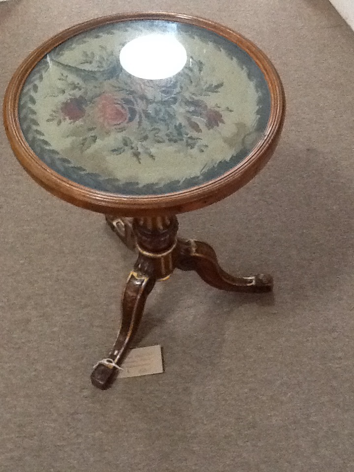 Wood & Gilt Occasional Table with Needle Craft Top