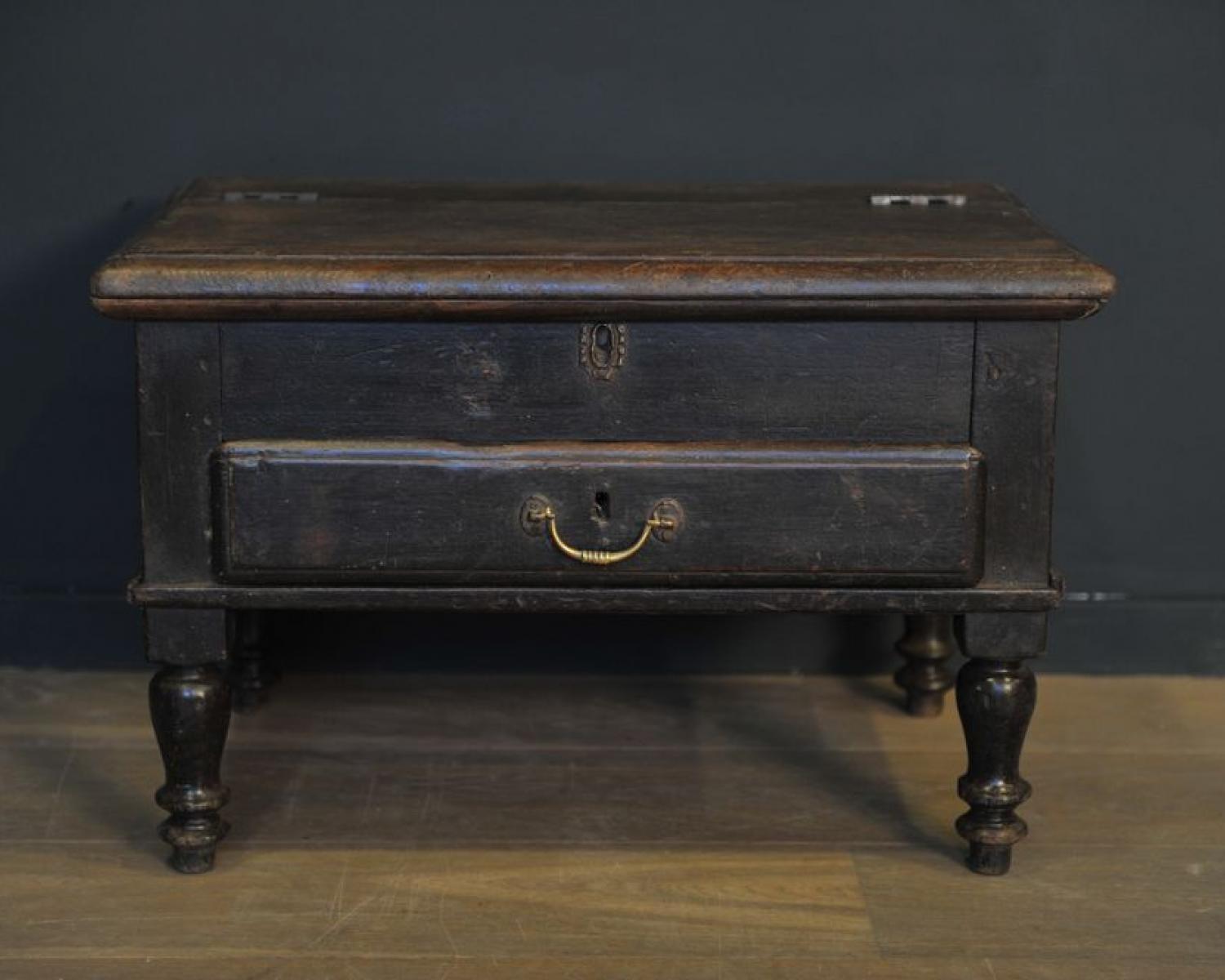 Wooden box with a fold up lid and a drawer