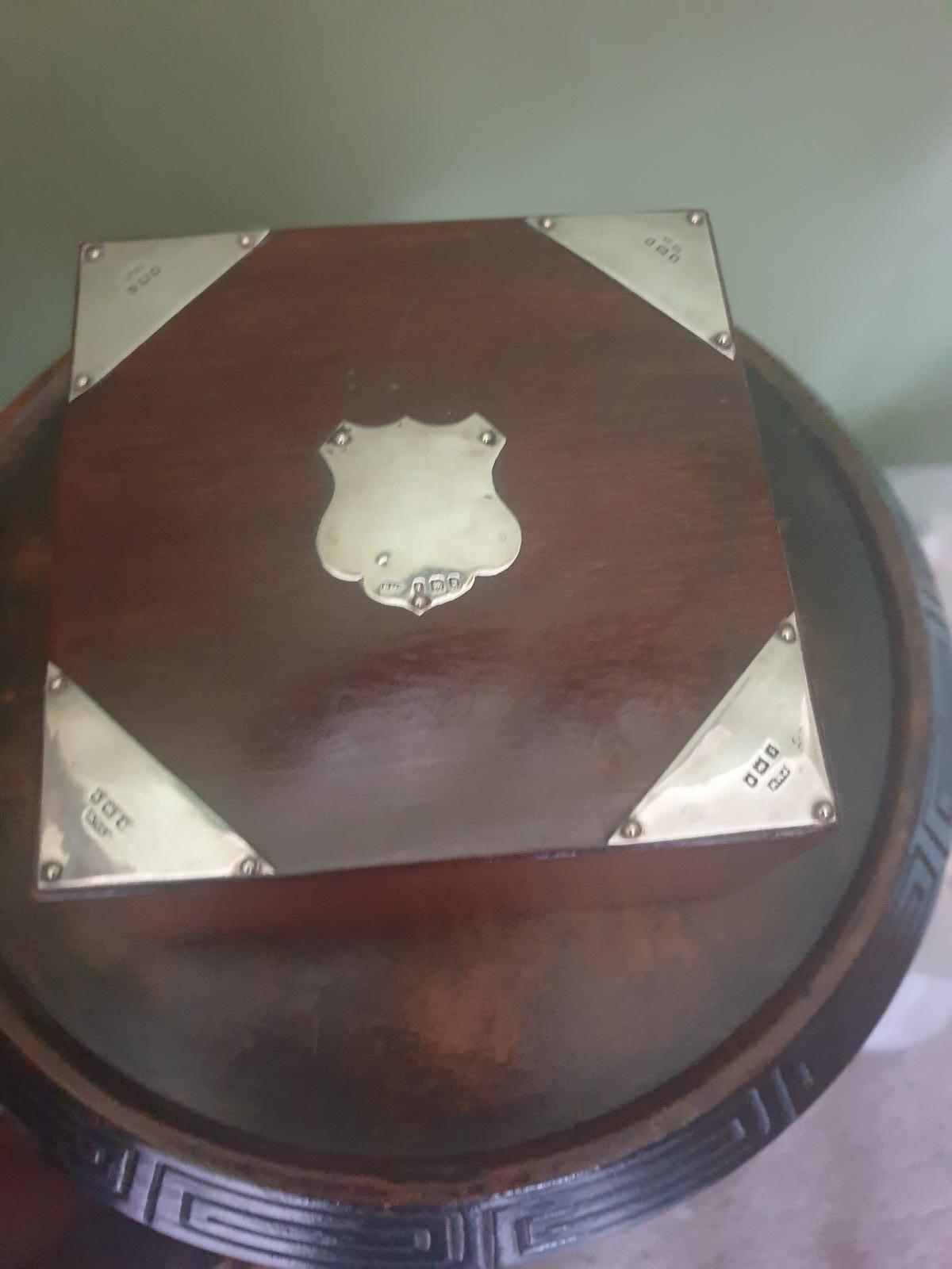 Wooden Box with Silver Corners - Hallmarked London 1901